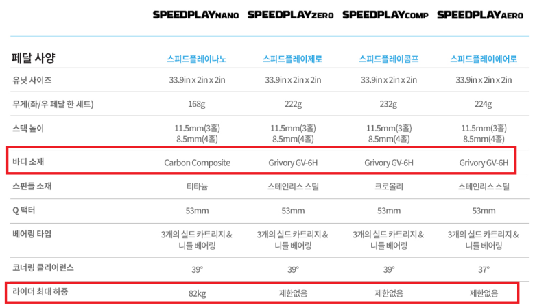 나노(카본)을 제외한 콤푸, 제로, 에어로 모두 Grivory GV-10이란 소재로 되어 있습니다.