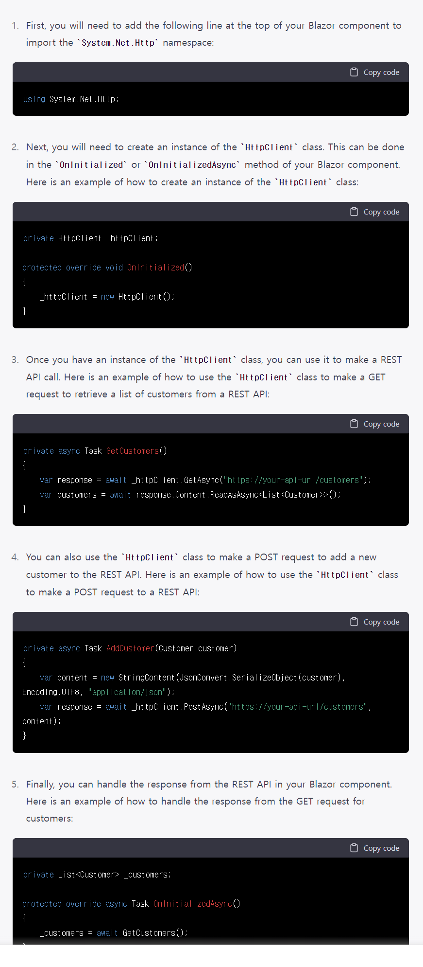 2. blazor에서 Rest Api를 호출하는 코드