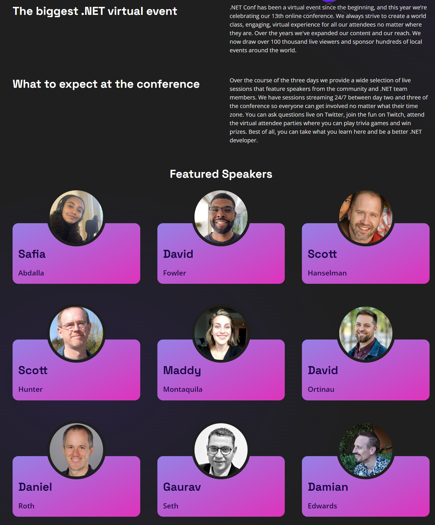 요즘은 가장 큰 행사가 .NET Conf... 올해는 11월 14~16일까지 열리며 이때 .NET 8(C# v12)이 정식 출시가 예정되어 있다.